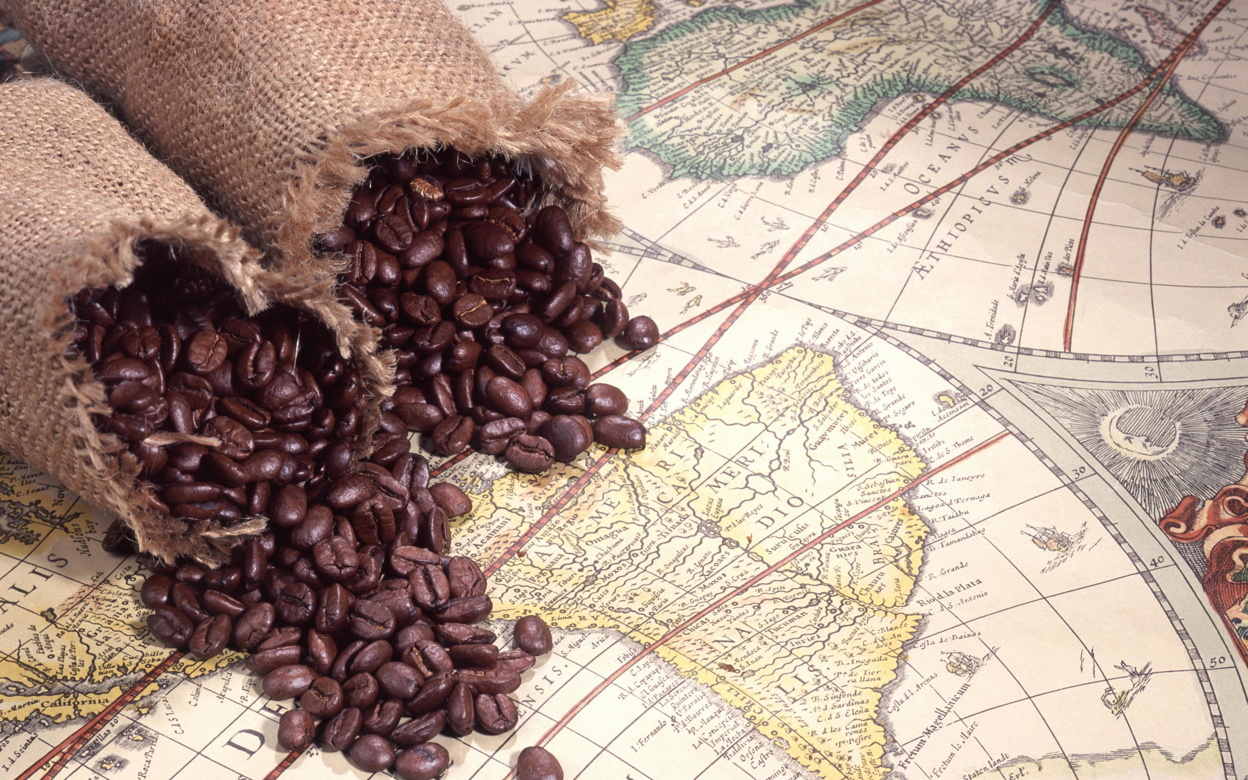 Изображение «Кофейные зерна на карте» отлично подойдет для подготовки презентации в программе PowerPoint или сервисе Prezi.