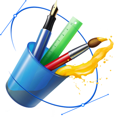 На иконке расположены кисть, линейка и ручка - незаменимые инструменты для творческого человека. Картинка-иконка может быть использована при подготовке учебных презентаций.